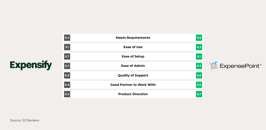 For teams that want strong ongoing support and solid functionality, ExpensePoint comes out ahead. Some users find Expensify’s support and value solid, but Cost vs benefit ratio shifts with scale. |